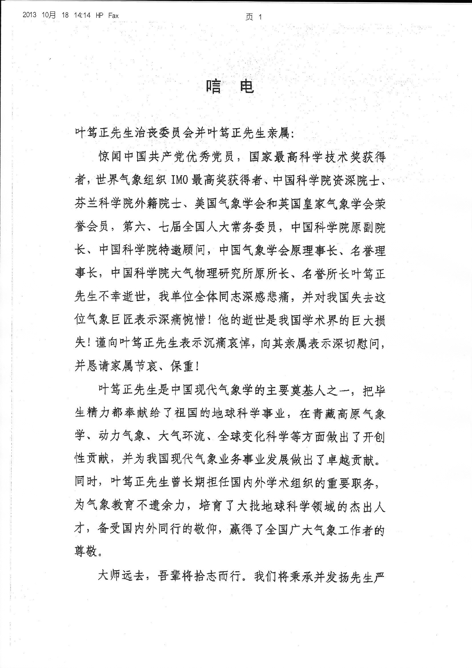 唁电