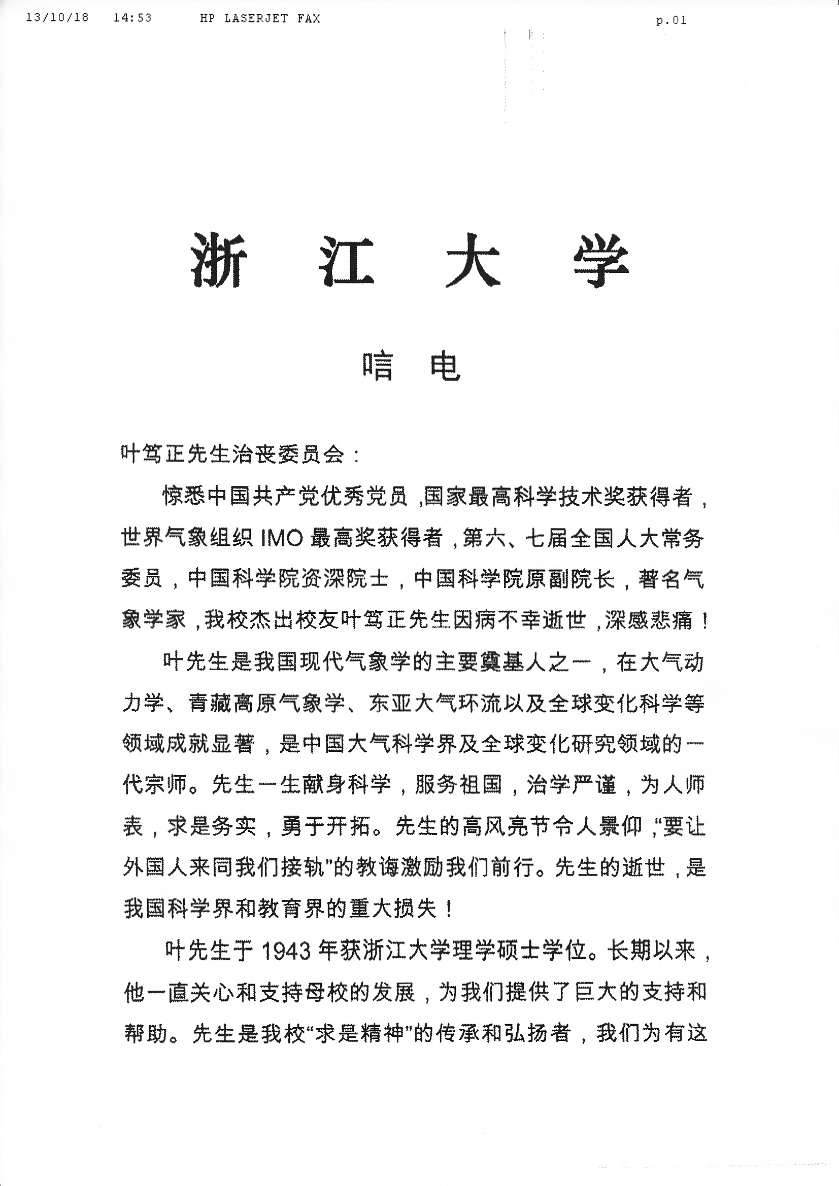 唁电