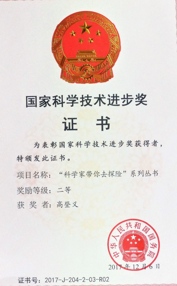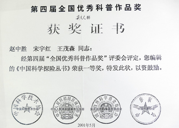 照片14.获得第四届全国优秀科普作品奖一等奖证书