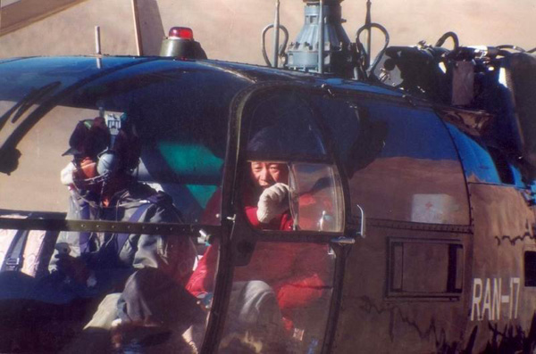 照片7.热气球坠毁后,三位日本热气球驾驶者伤员被尼泊尔军用直升机送到加德满都