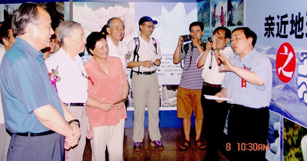 照片10.在《亲近地球三极展》上做讲解员(左起,毛如柏、叶笃正、邓楠、孙枢)