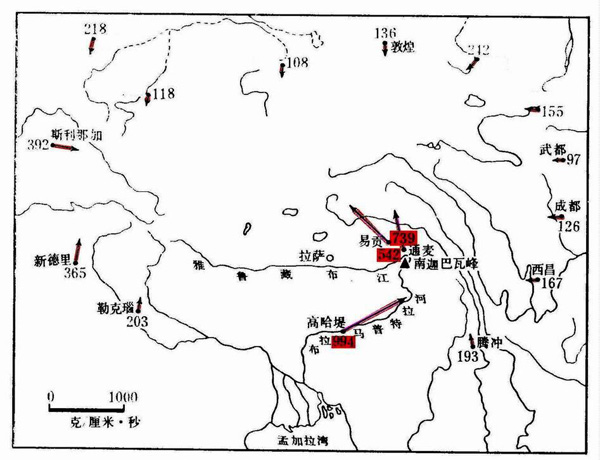 观测实践发现青藏高原四周向高原腹地输送水汽的最大通道作用 1983年,我们观测计算了沿青藏高原四周向高原腹地输送水汽的分布,发现沿着布拉马普特拉河—雅鲁藏布江河谷逆江而上的水汽输送是沿青藏高原向腹地输送水汽的最大通道。其输送水汽强度相当于夏季从长江南岸向北岸输送的水汽。而且与地学家、生物学家和社会学家合作,发现了这条水汽通道不仅改变了青藏高原东南部的自然环境,而且改变了藏民族的历史发展。
