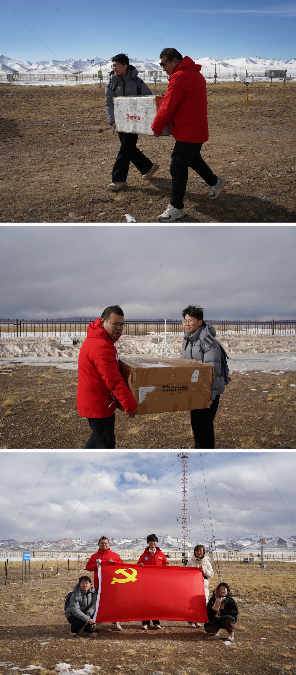 这是我出野外的时候学生拍的照片,一个是24年2月份去纳木错维修仪器,一个是在格尔木探空实验后到盐碱地回收仪器。(白志宣提供)