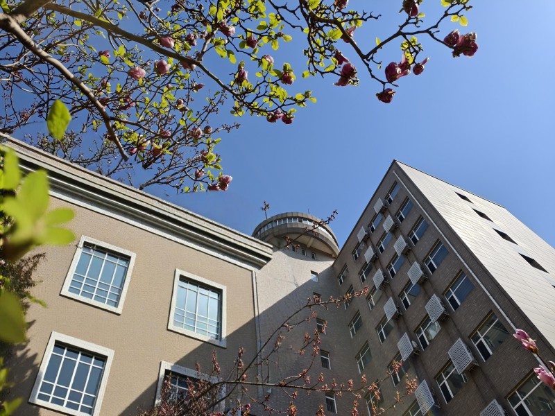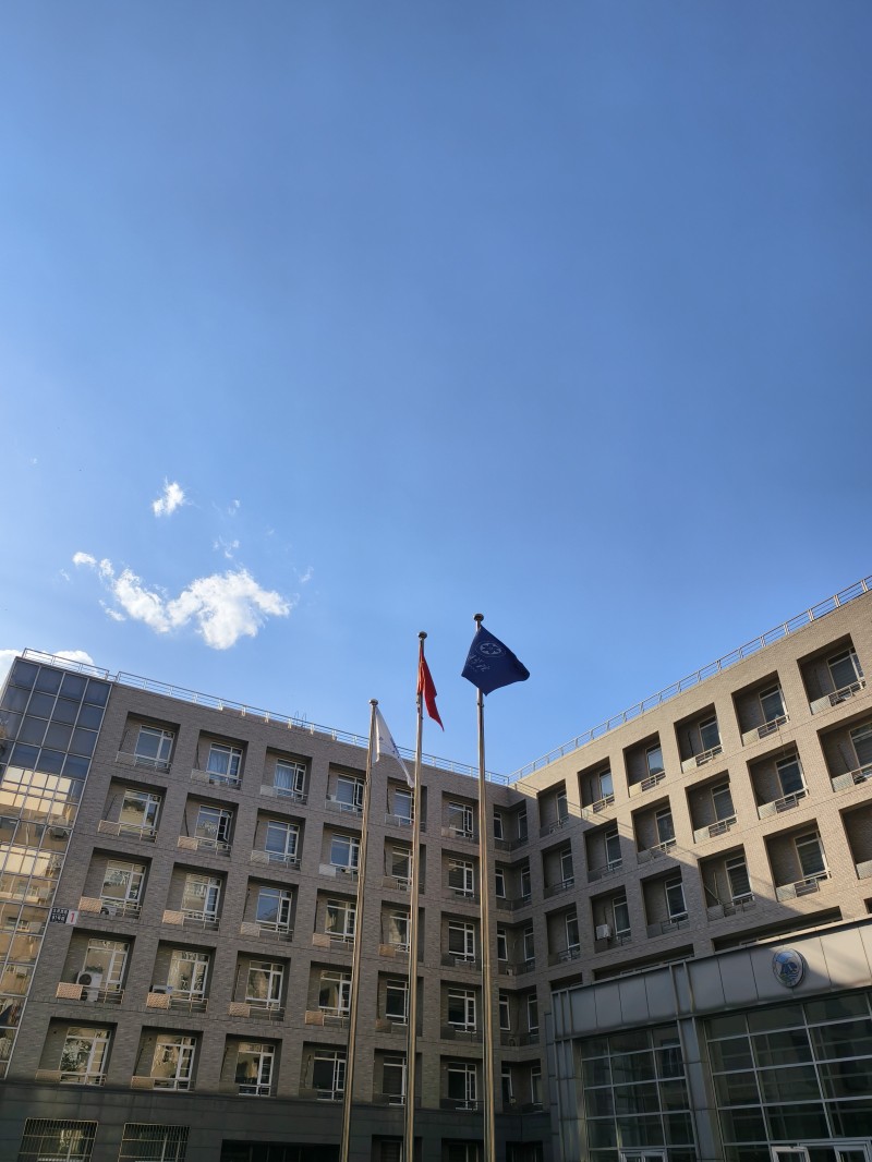 风云智境--大气所园区的建筑现代规整,道路延伸向远方的气象观测塔楼,如科技触角探入蓝天。见证气象研究与现代科技的深度交融。(王昭提供)