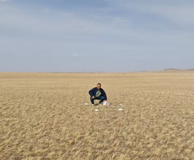 昆仑山上取样:2024年8月,青海省海西州都兰县,登上海拔4764.1米的昆仑山脉,深入无人区的高寒草原采样,为研究草原碳汇收集没有人类活动干扰的“纯天然”样品。(李萍提供)
