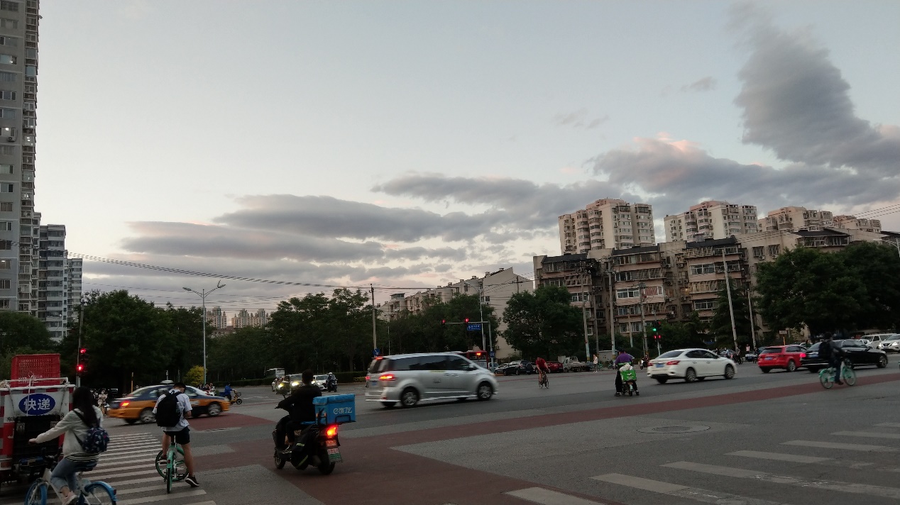 2021年5月28日19时28分,北京望京街头,罕见的波浪状低空层积云。波浪状云彩更常出现在中到高层大气的高积云和卷云层中,因为更容易出现形成开尔文-亥姆霍兹不稳定性所需的显著风切变和稳定的密度分层。(涂锴提供)