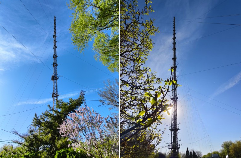 在大气所铁塔上开展了二氧化碳观测实验,从不同角度对观测塔进行了拍摄。(韩鹏飞提供)