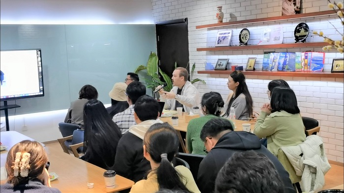 两位老师的报告引起了大家的共鸣,在嘉宾和观众间激发了热烈的讨论。姚晨教授认为,作曲要重视与观众的交流,面对气候危机的紧迫性,如何在保持音乐美感的同时有效传达信息,是一个值得深入探讨的问题。Blake Stevens教授高度赞赏了这场别具一格的跨界盛会,并期待更多这样的交流机会,催生出更多元化的音乐作品和活动。大家围绕如何运用气象数据创作既动听又有意义的乐曲、音乐创作如何与科研结合、音乐创作如何体现气候变化的地域性、音乐如何促进气候行动等方面内容,进行了深入交流,为科学传播的创新之路点亮了新的灵感火花。