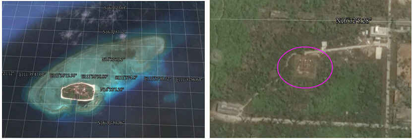 珊瑚岛(左)和珊瑚岛气象站(右)(图片来自Google Earth截图)