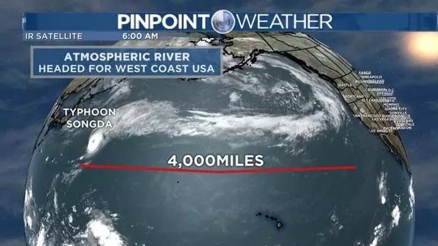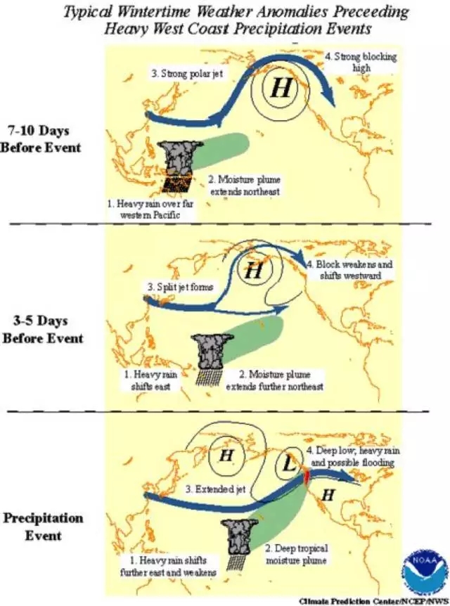 进入2017年2月以后,位于北加州的美国最高的奥罗维尔水坝出现险情,2月12日,政府紧急撤离近20万当地居民,这迅速成为热点新闻,尽管这与水坝等基础设施年久失修有关,但是近期几次强暴雨过程造成水位上涨超过最高点则是直接原因,在这几次暴雨背后,菠萝快车都是暴雨的来源。