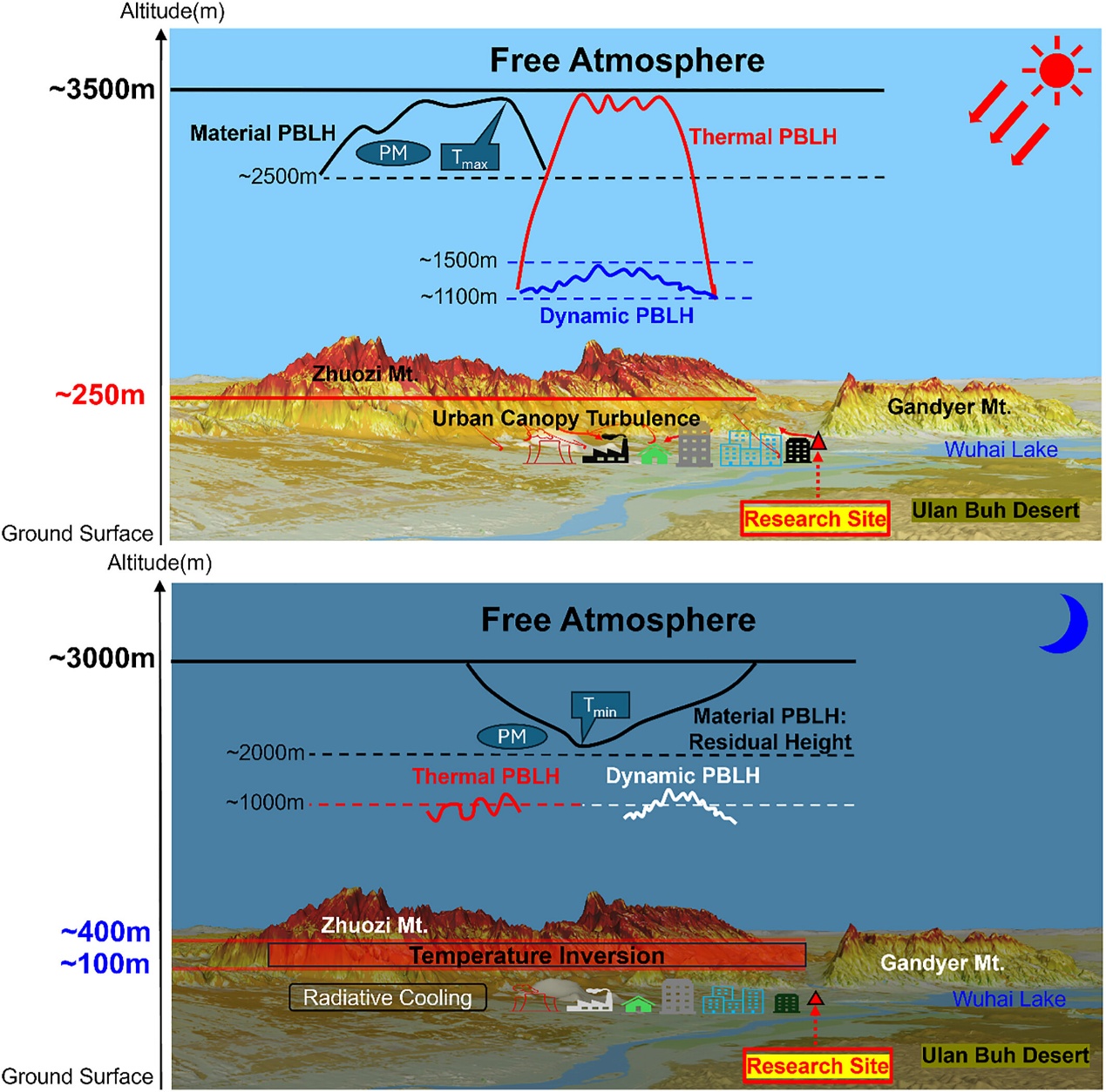Yulong Tan, Jinyuan Xin, Xiang Qin, Yongjing Ma, Jianzhong Xu, Yuming Du, Chunlin Shang, Liyuan Zhao, Yongli Tian, Qingyun Fan, XingjunZhou, Yuanzhe Ren, Peng Wang, Feng Hao, Ninglu Yin, Xinbing Ren, Kecheng Peng, Danjie Jia, Xiaole Pan, Jie Li, Zifa Wang, Asim Qayyum Butt. Differences among Thermal, Dynamic, and Material Boundary Layers over Complex Terrain. Journal of Geophysical Research: Atmospheres, 2025, 130(9), e2024JD043043.