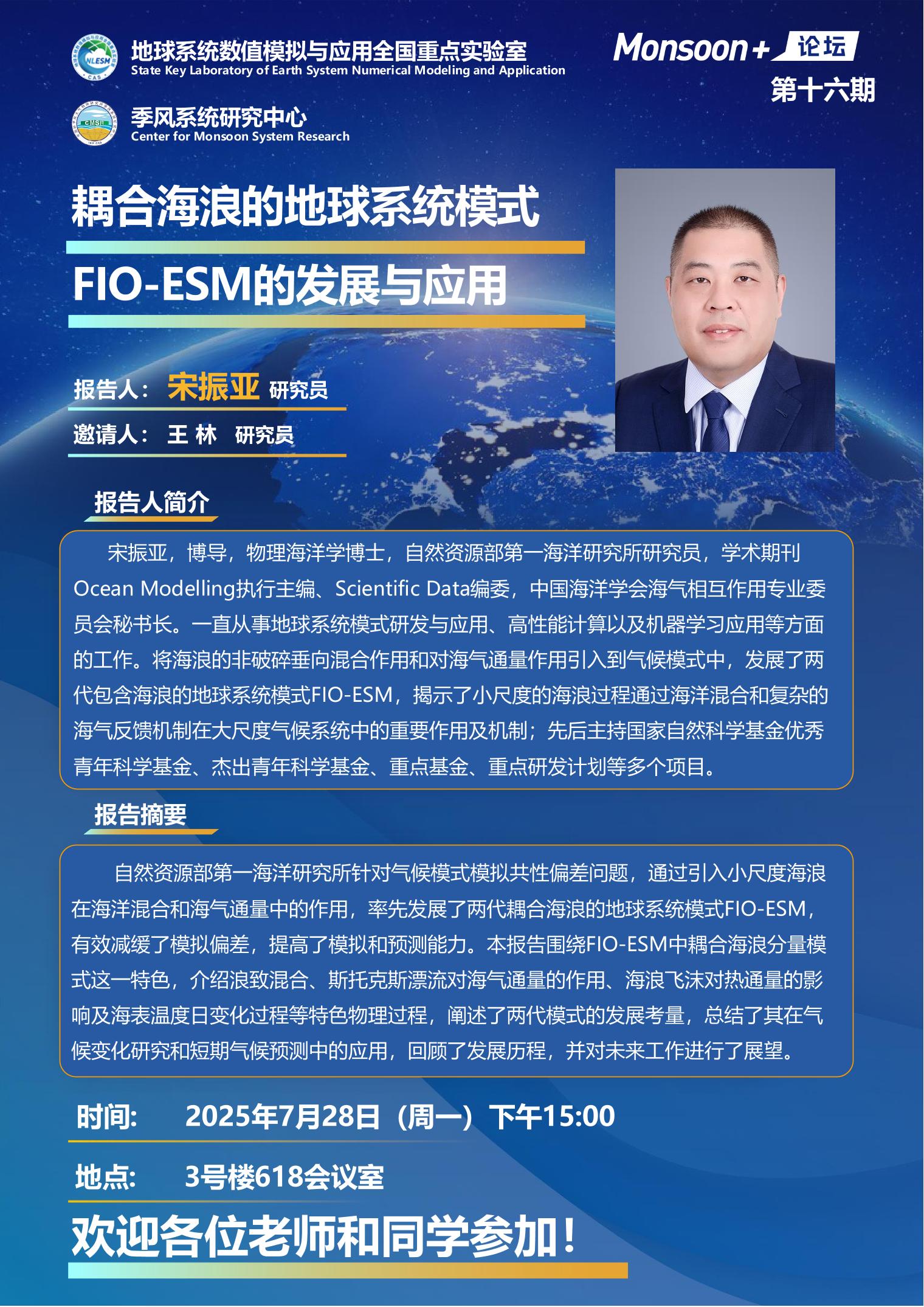 【7.28】耦合海浪的地球系统模式FIO-ESM的发展与应用