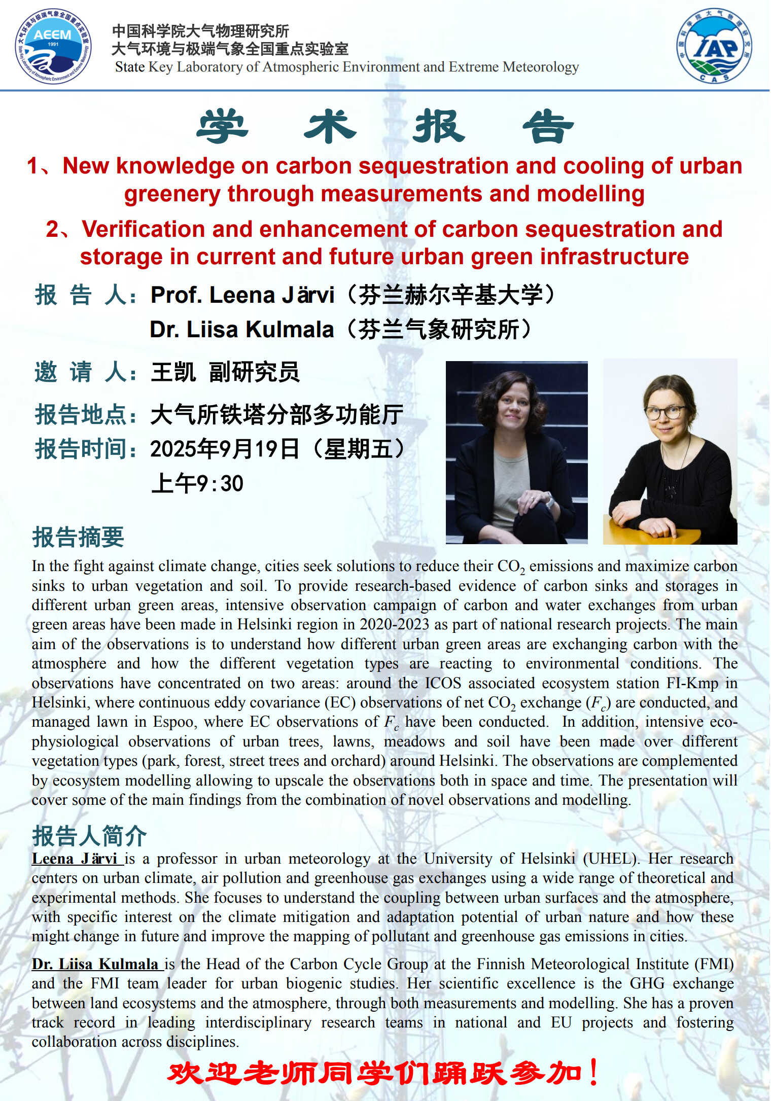 【9.19】New knowledge on carbon sequestration and cooling of urban greenery through measurements and modelling