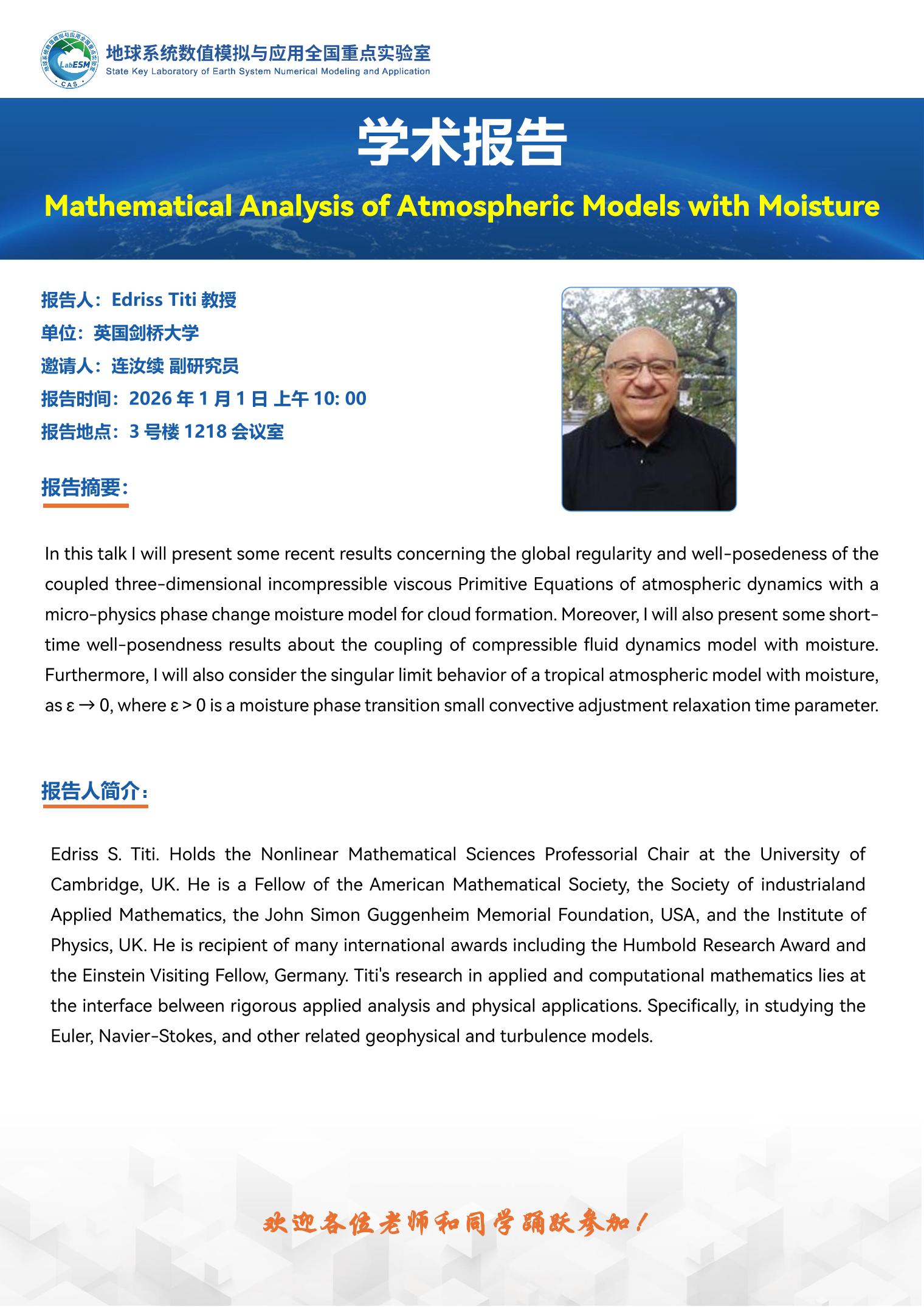 【1.1】Mathematical Analysis of Atmospheric Models with Moisture
