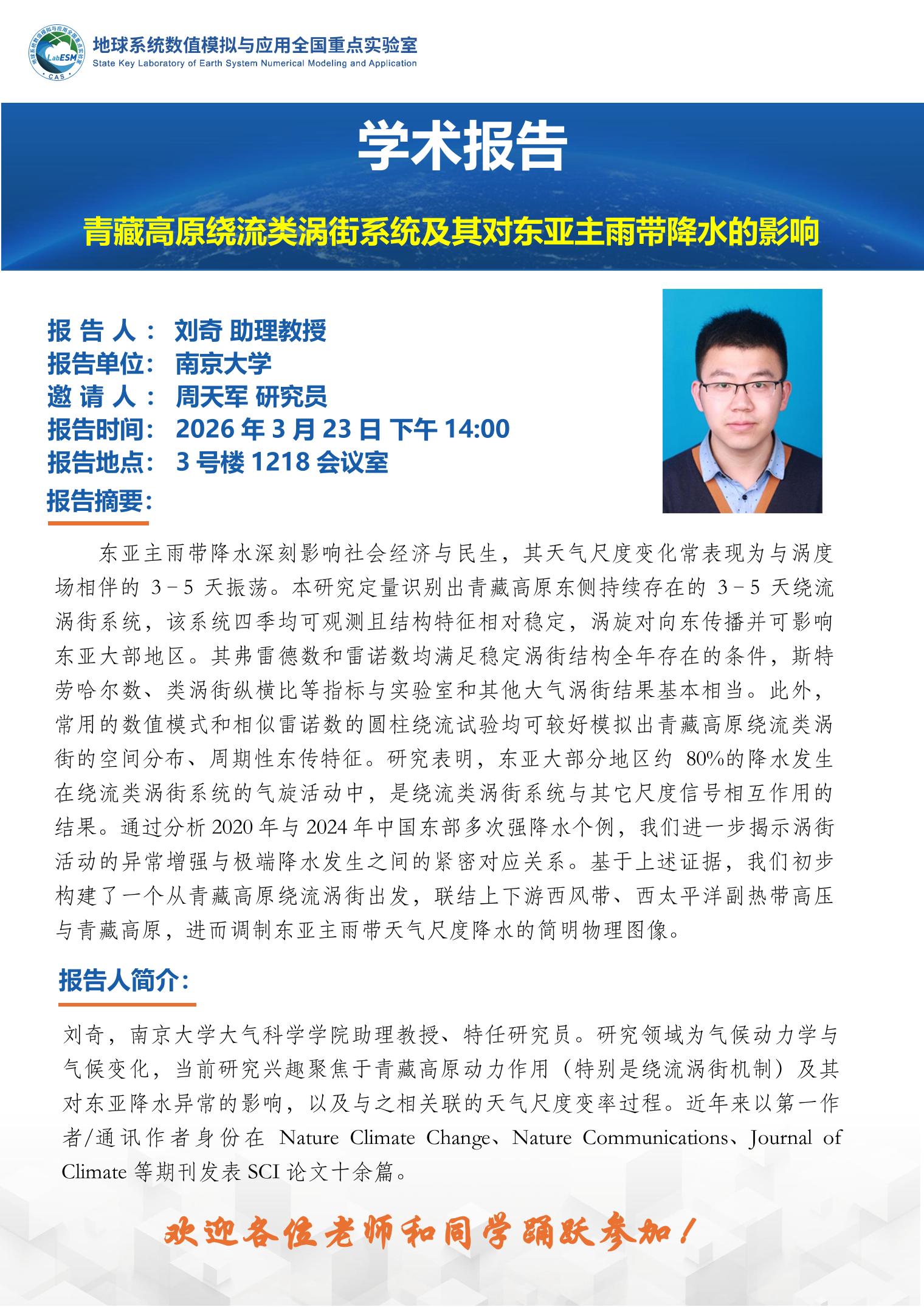 【3.23】青藏高原绕流类涡街系统及其对东亚主雨带降水的影响