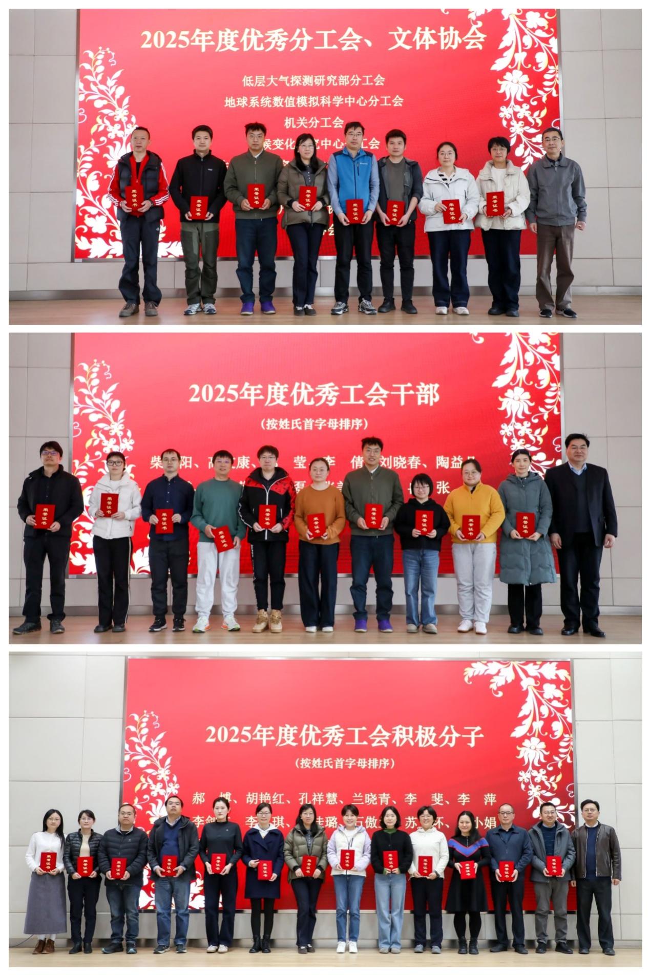 会上,陆日宇宣读《关于表彰2025年度优秀分工会、优秀文体协会、优秀工会干部和优秀工会积极分子的决定》,并与副所长周天军、纪委书记占车生一同为获奖代表颁发荣誉证书。