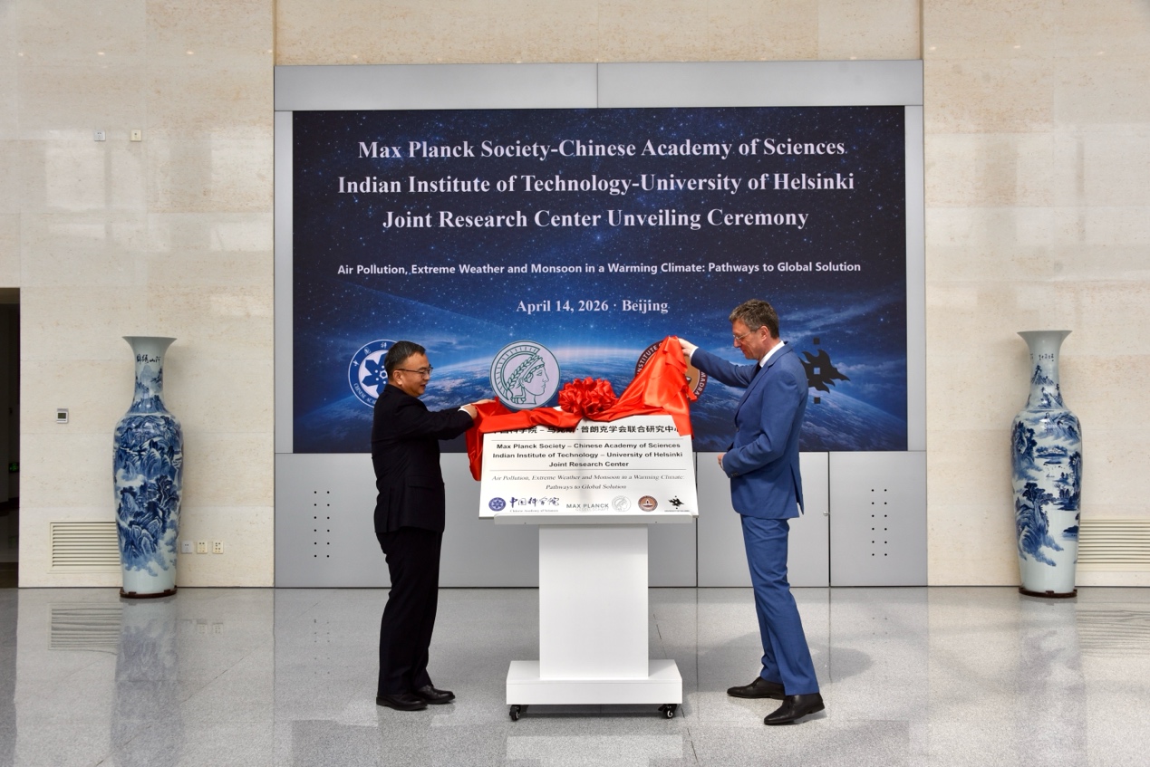 4月14日,德国马普学会–中国科学院–印度理工学院–赫尔辛基大学联合研究中心(简称“马普国际中心”)在中国科学院大气物理研究所密云园区正式揭牌成立。德国马普学会主席Patrick Cramer、中国科学院副院长何宏平出席仪式并共同揭牌,大气所所长姜大膀主持仪式。