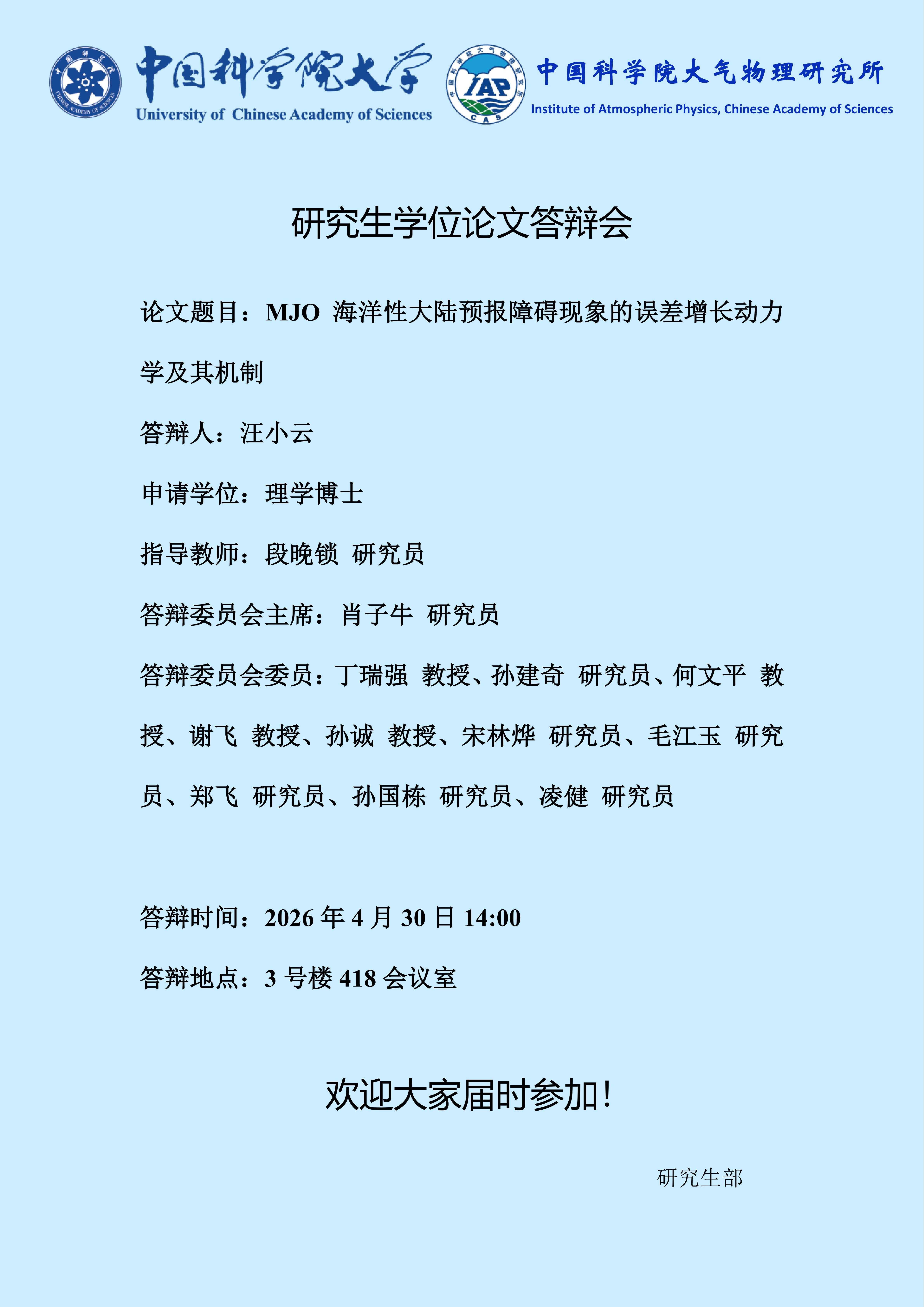 【4.30】博士学位论文答辩报告会(汪小云)