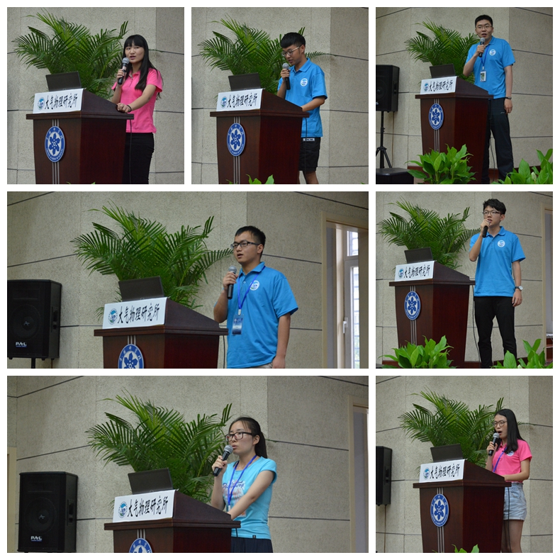 接下来是各组营员代表、菁英班代表发言。河南师范大学的张慧娜和南京信息工程大学的朱泽文表示,五天的夏令营活动接近尾声,认识了众多气象界的大牛,从聆听众多精彩的报告中了解大气所,与来自全国各地的同学刚认识又分别,希望来年还会再见。广东海洋大学的曹凯和云南大学的金泽则用“感谢”来表达此刻的心情,感谢大气所精心策划的本次夏令营,构建这样的平台能够听到大气科学最前沿的报告,学到很多书本上学不到的东西。云南大学的张海龙和中国海洋大学的张文其感谢大气所老师们这几天的答疑解惑,谈到参观两弹一星纪念馆,老一辈科学家不怕苦,为了国家,敢做敢拼,隐姓埋名,令人肃然起敬。菁英班代表周瑭乐则围绕“感恩”、“成长”、“担当”来表达了夏令营的所思所感。